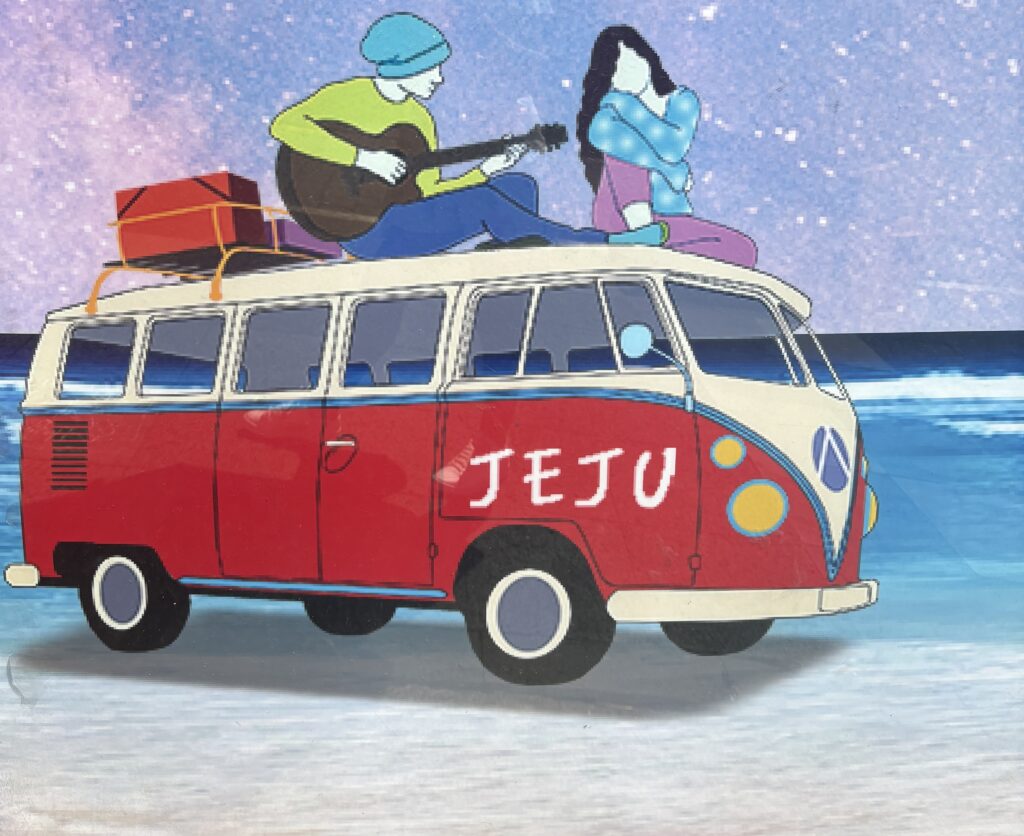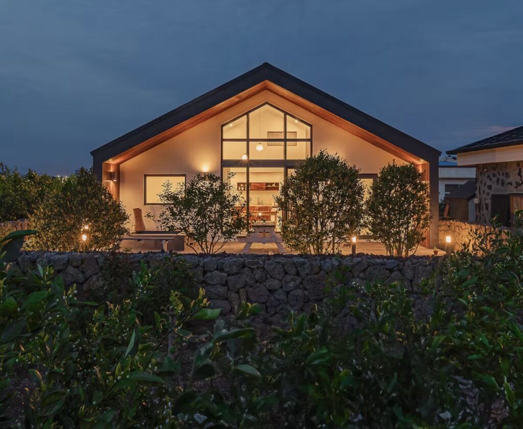 Nous posons nos valises pour quelques jours au Sud de L’île de Jeju dans cette maison entourée de champs de mandariniers.