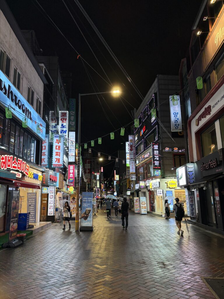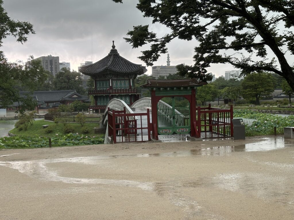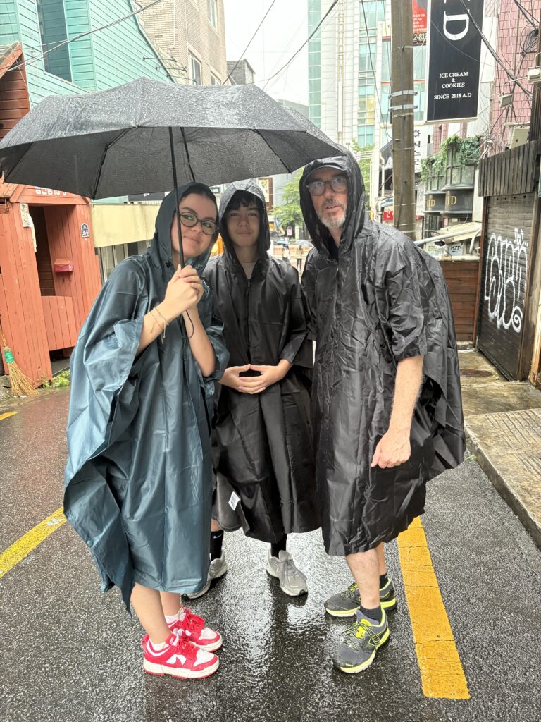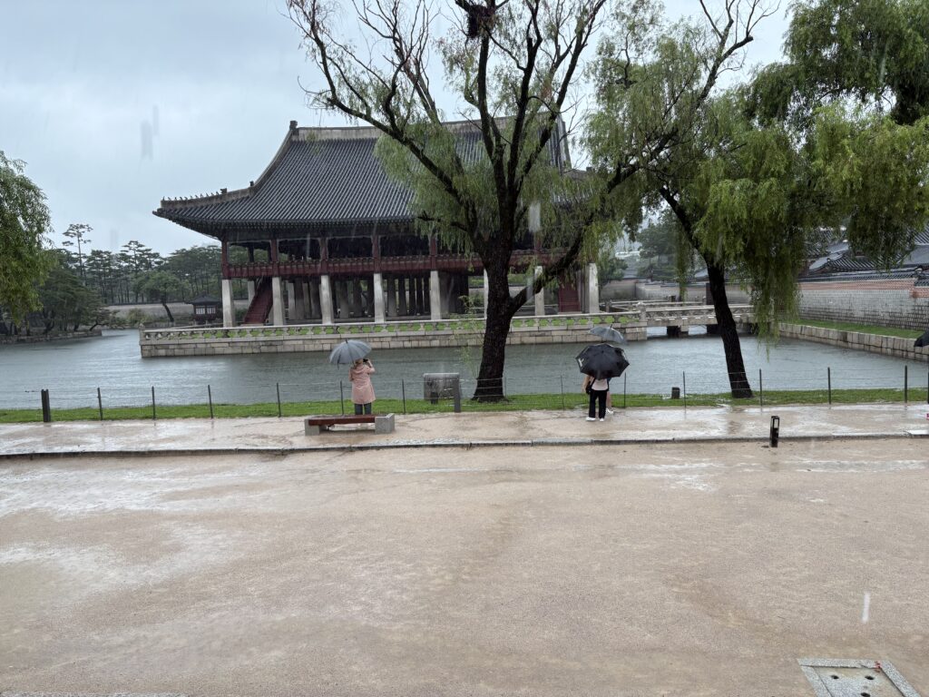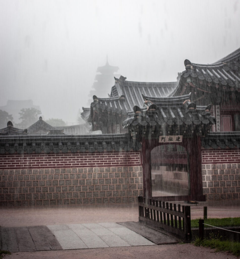 C’est sous une pluie diluvienne que nous avons arpenté les rues de Séoul aujourd’hui.