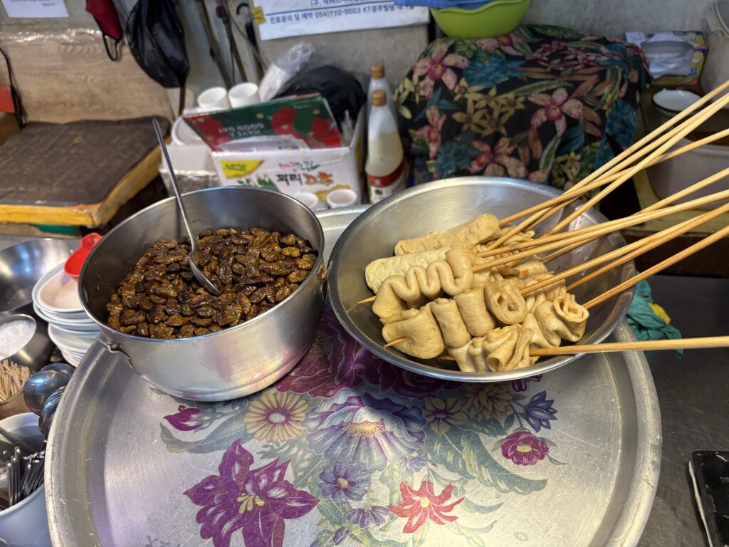 Insectes 🐛 pimentés et brochettes de tripes que nous n’avons pas eu le courage de goûter…enfin pour le moment 😁